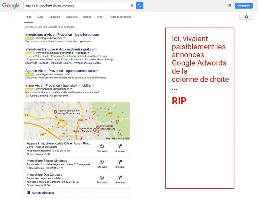 Google Adwords mise sur 4 annonces en tête